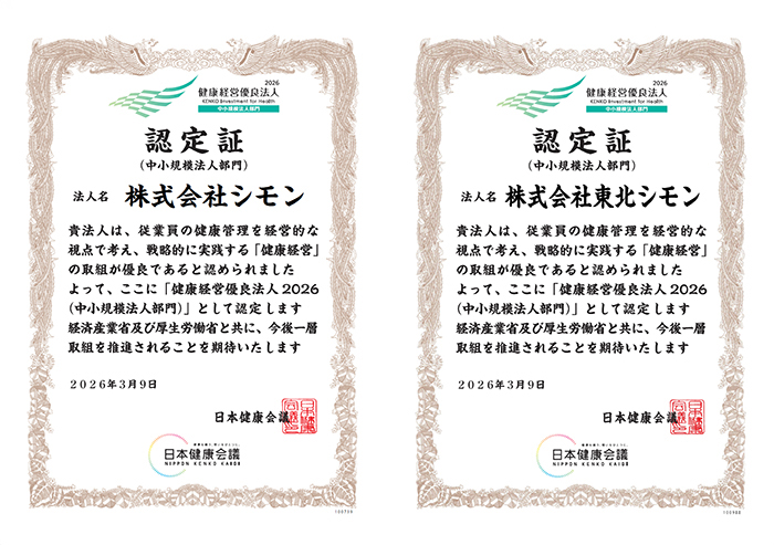 株式会社シモン、株式会社東北シモン、が「健康経営優良法人2026」に認定されました。