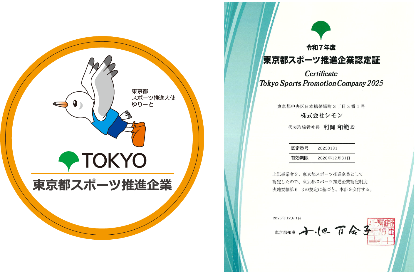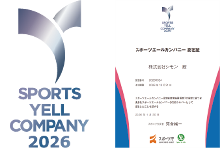 株式会社シモンは社員の健康増進のためにスポーツの実施に向けた積極的な取組を行っている企業として、スポーツ庁より「スポーツエールカンパニー2026」東京都より「令和7年度東京都スポーツ推進企業」に認定されました。