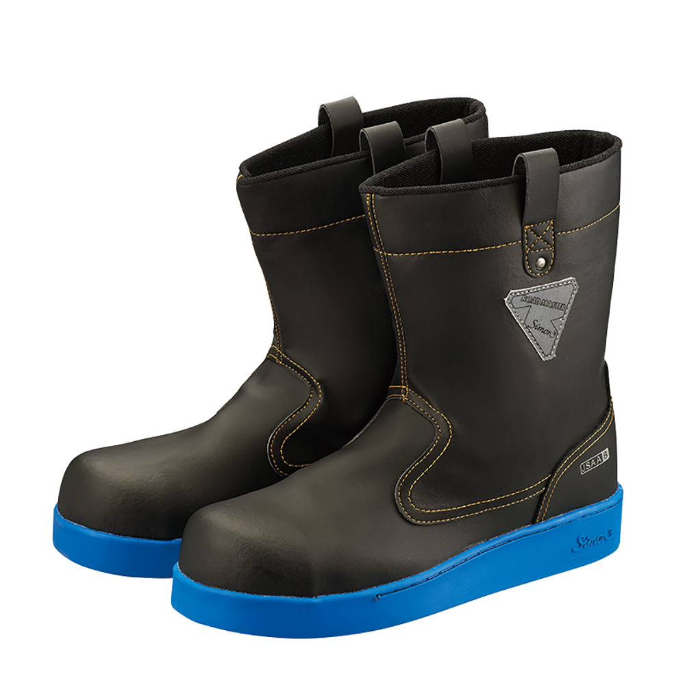 靴底のはく離を防ぐサイドステッチ 高温な舗装作業で靴底のはく離を防止するサイドステッチ。
