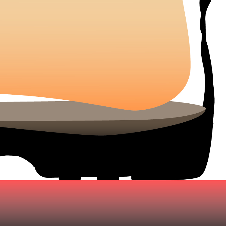 耐油性、耐薬品性の性質を持つニトリルゴム(NBR)を靴底に使用。耐摩耗性も高く、耐久性に優れています。